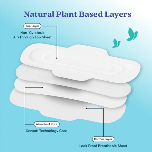 Bliss Natural Plant-Based Sanitary Pads are made of kensoft technology and use natural plant-based materials to provide feathery softness, giving you a rash-free, toxic-free, and irritation-free experience. It has a 3X absorption and a leak-proof breathable sheet that will lock the fluids to prevent leakage. It offers comfort with a gentle touch and is suitable for all skin types, including sensitive types. So, it is completely free from rashes, itching, and chemicals. The adhesive stick side is so thin that it can be used for various panties. You can change the pad for a hygienic period of 6 to 8 hours.