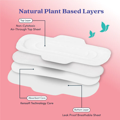 Bliss Natural Plant-Based Sanitary Pads are made of kensoft technology and use natural plant-based materials to provide feathery softness, giving you a rash-free, toxic-free, and irritation-free experience. It has a 3X absorption and a leak-proof breathable sheet that will lock the fluids to prevent leakage. It offers comfort with a gentle touch and is suitable for all skin types, including sensitive types. So, it is completely free from rashes, itching, and chemicals. The adhesive stick side is so thin that it can be used for various panties. You can change the pad for a hygienic period of 6 to 8 hours.